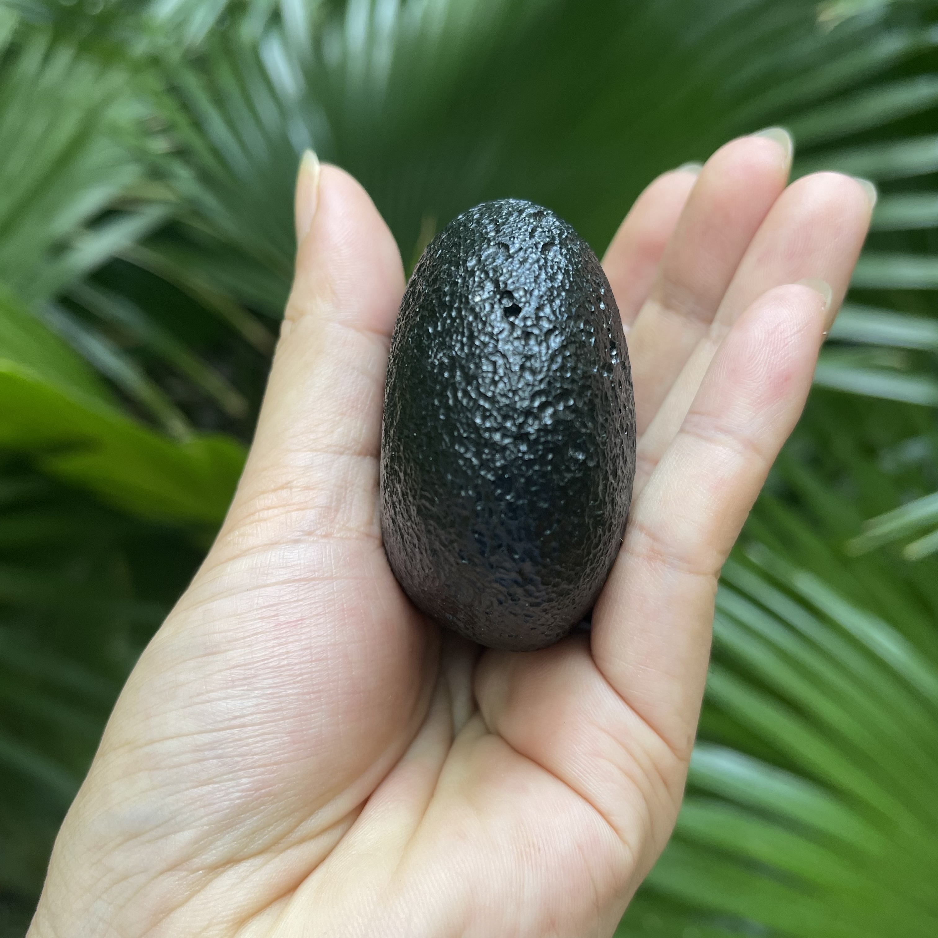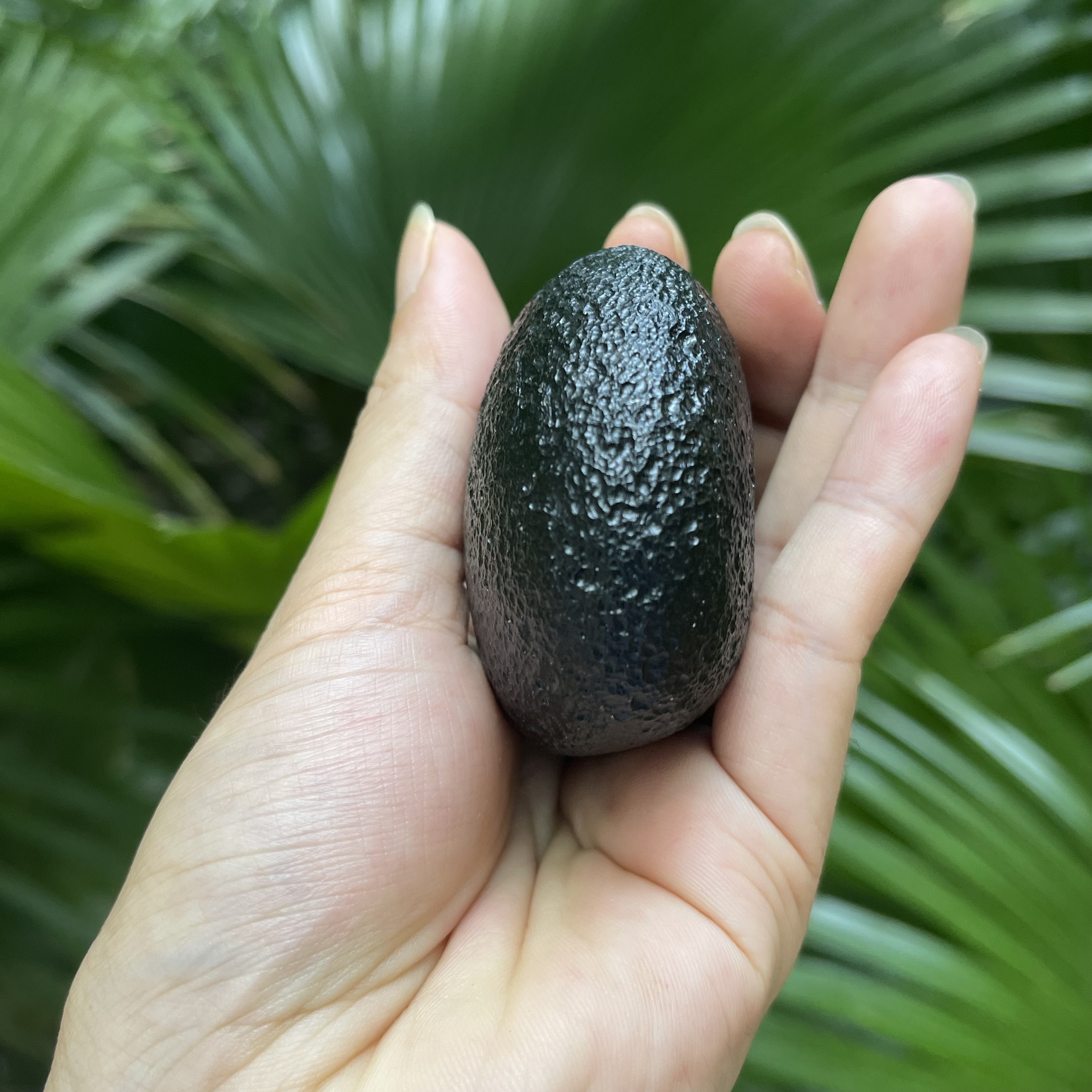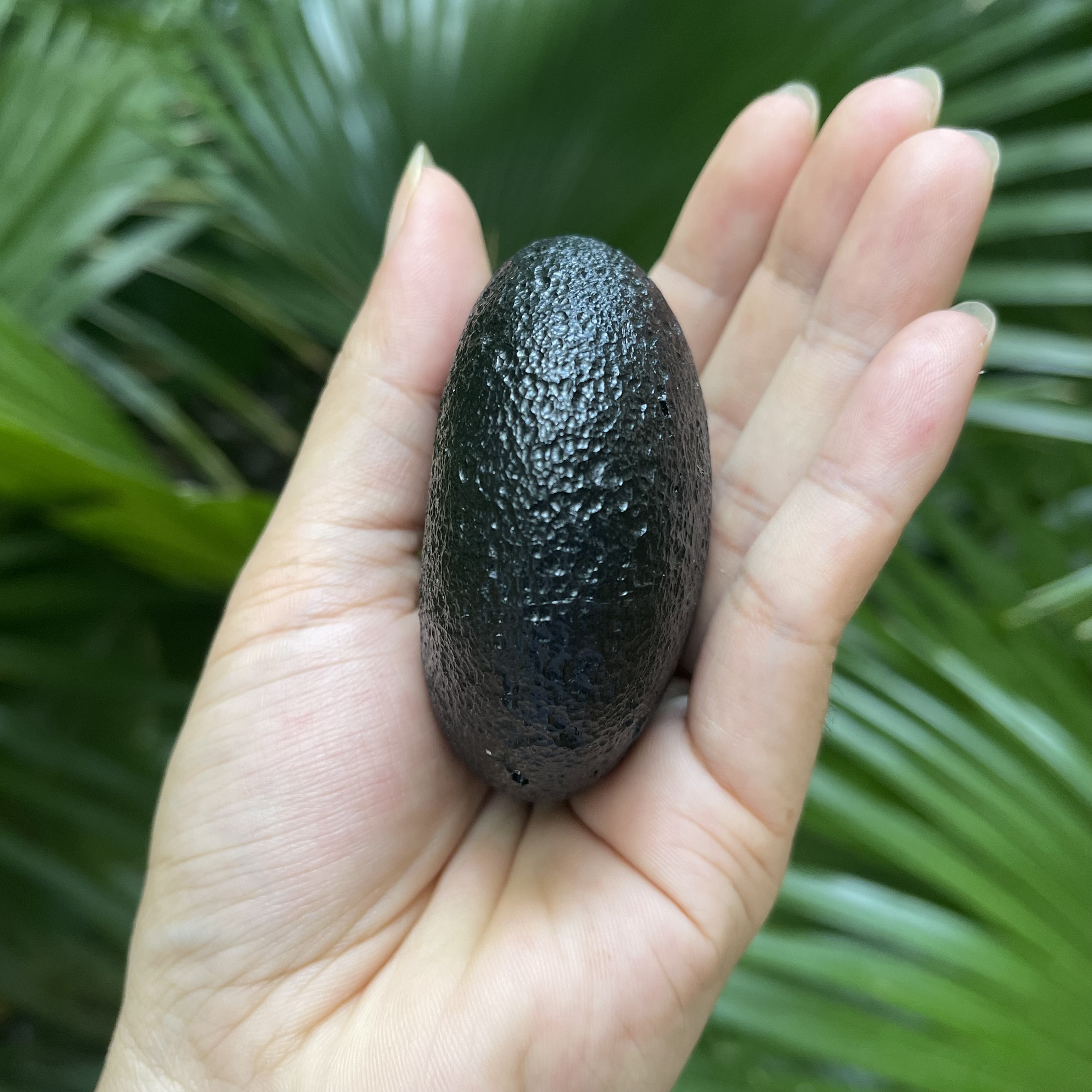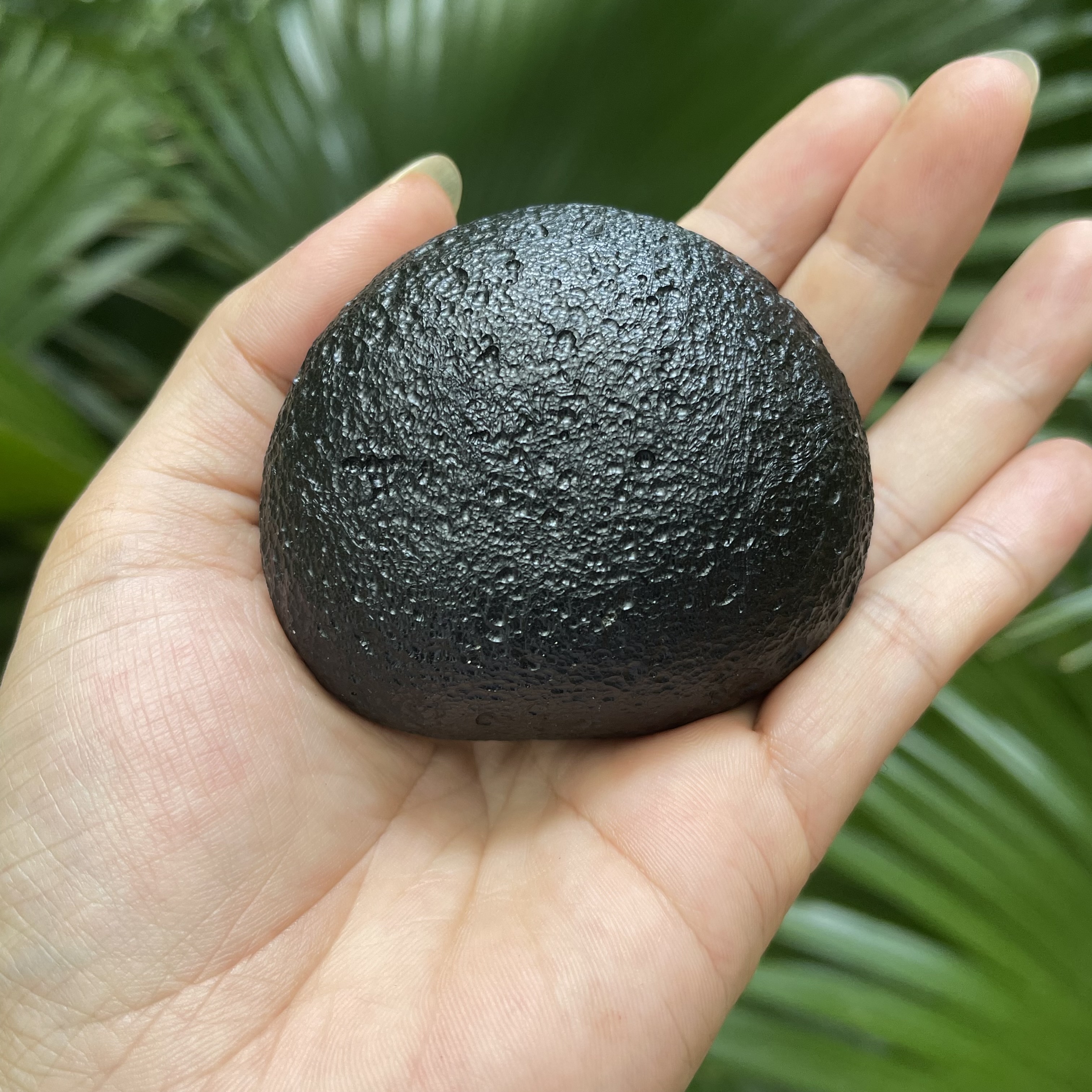 爱心形状玻璃陨石雷公墨,这是雷公墨中少见的微孔墨,表面气印密集细腻,很有美感的一颗,其重170克。