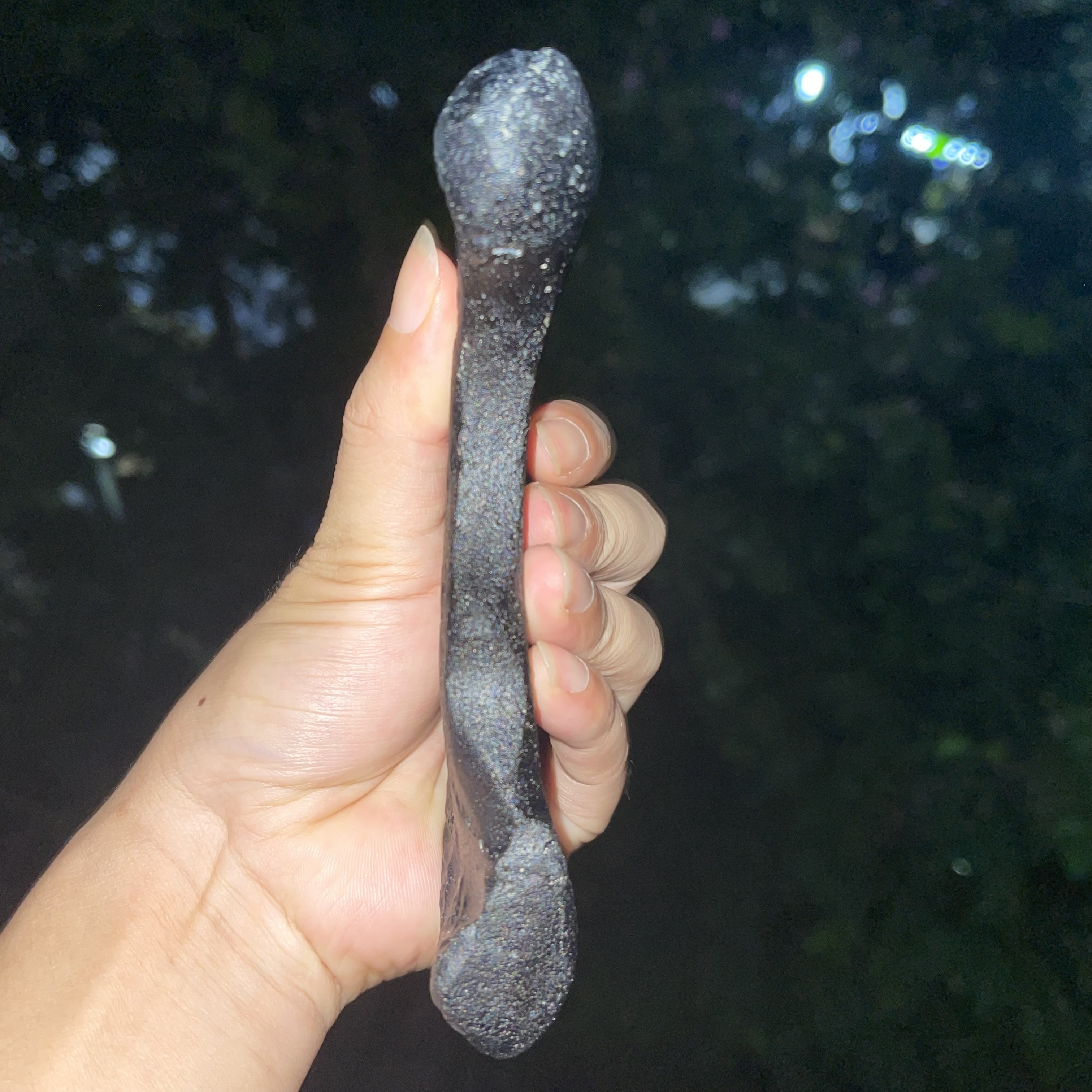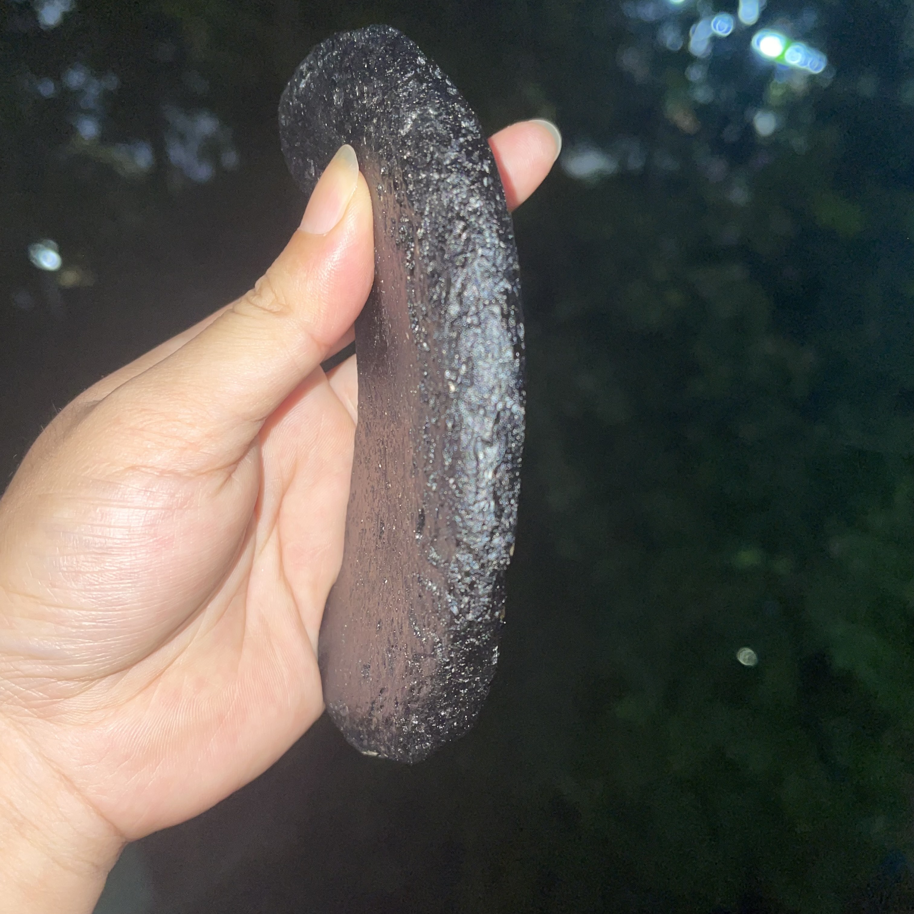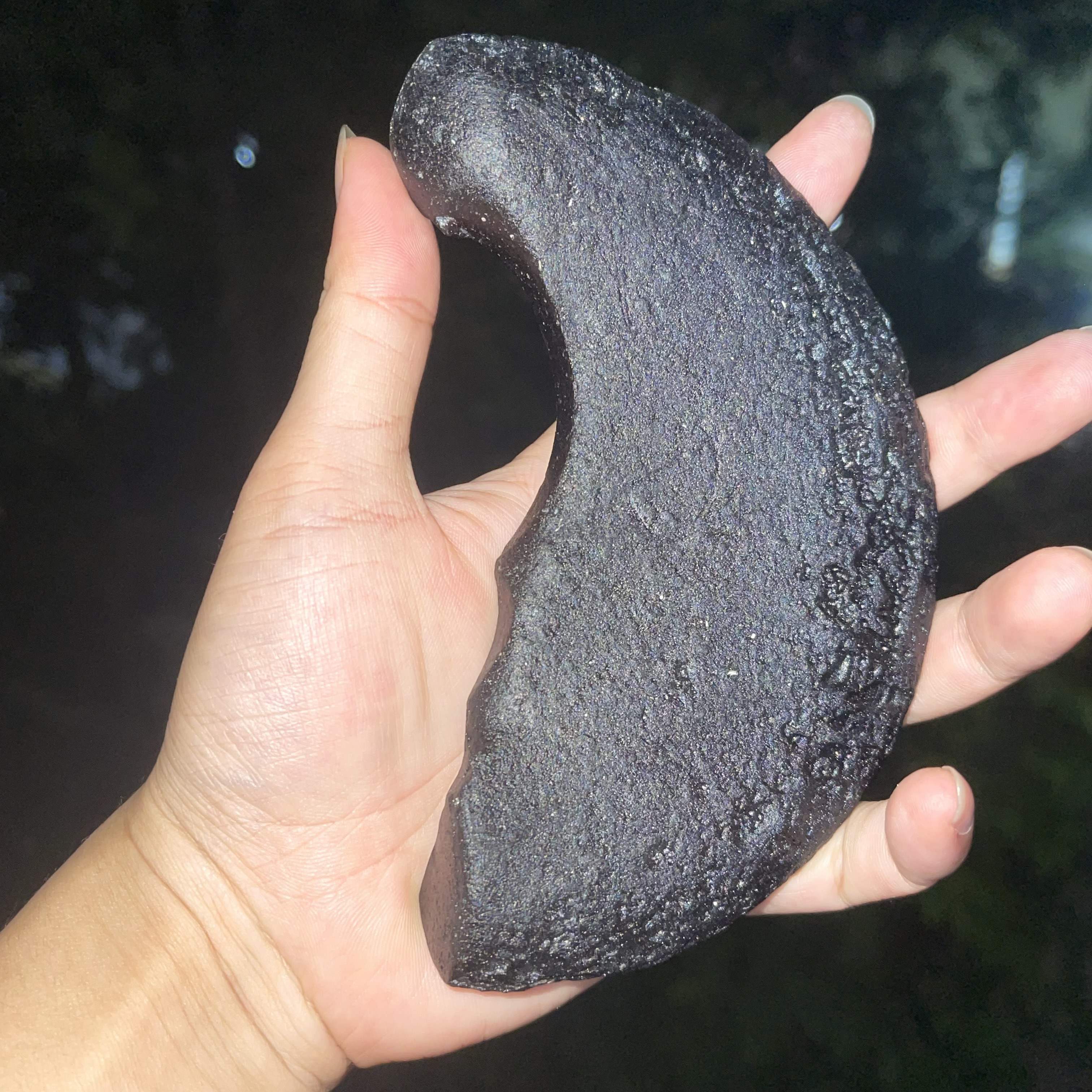 罕见月亮形状玻璃陨石雷公墨,一颗孤品级别的存在,其重约258克。