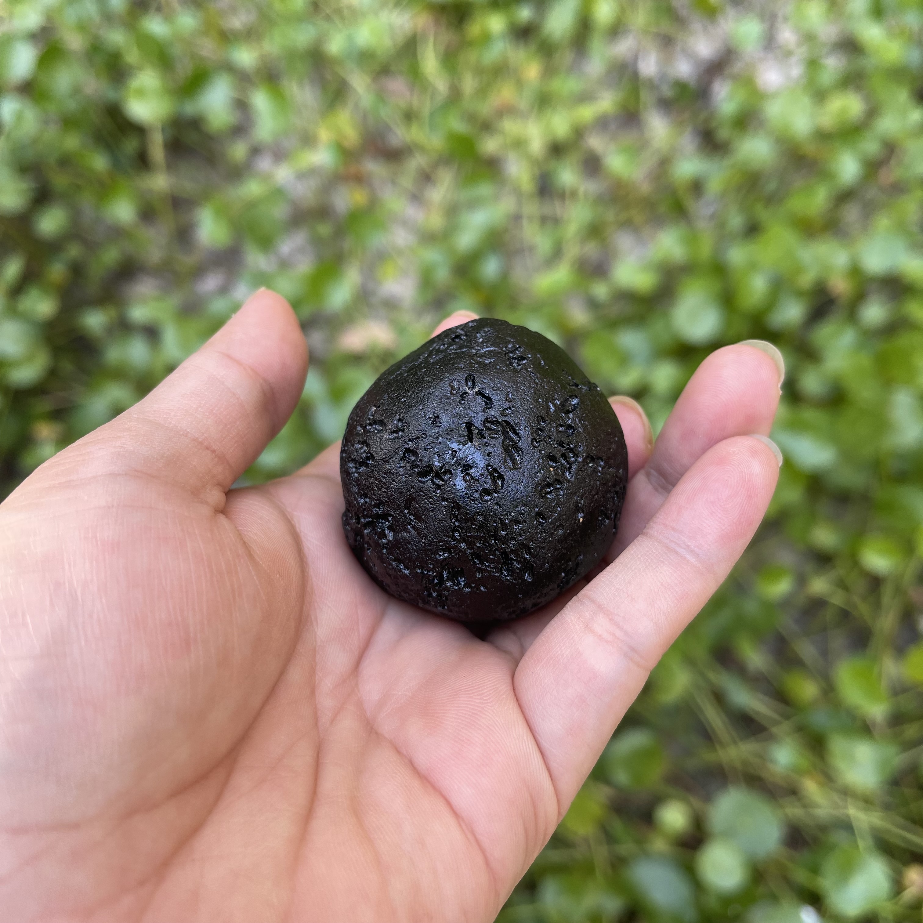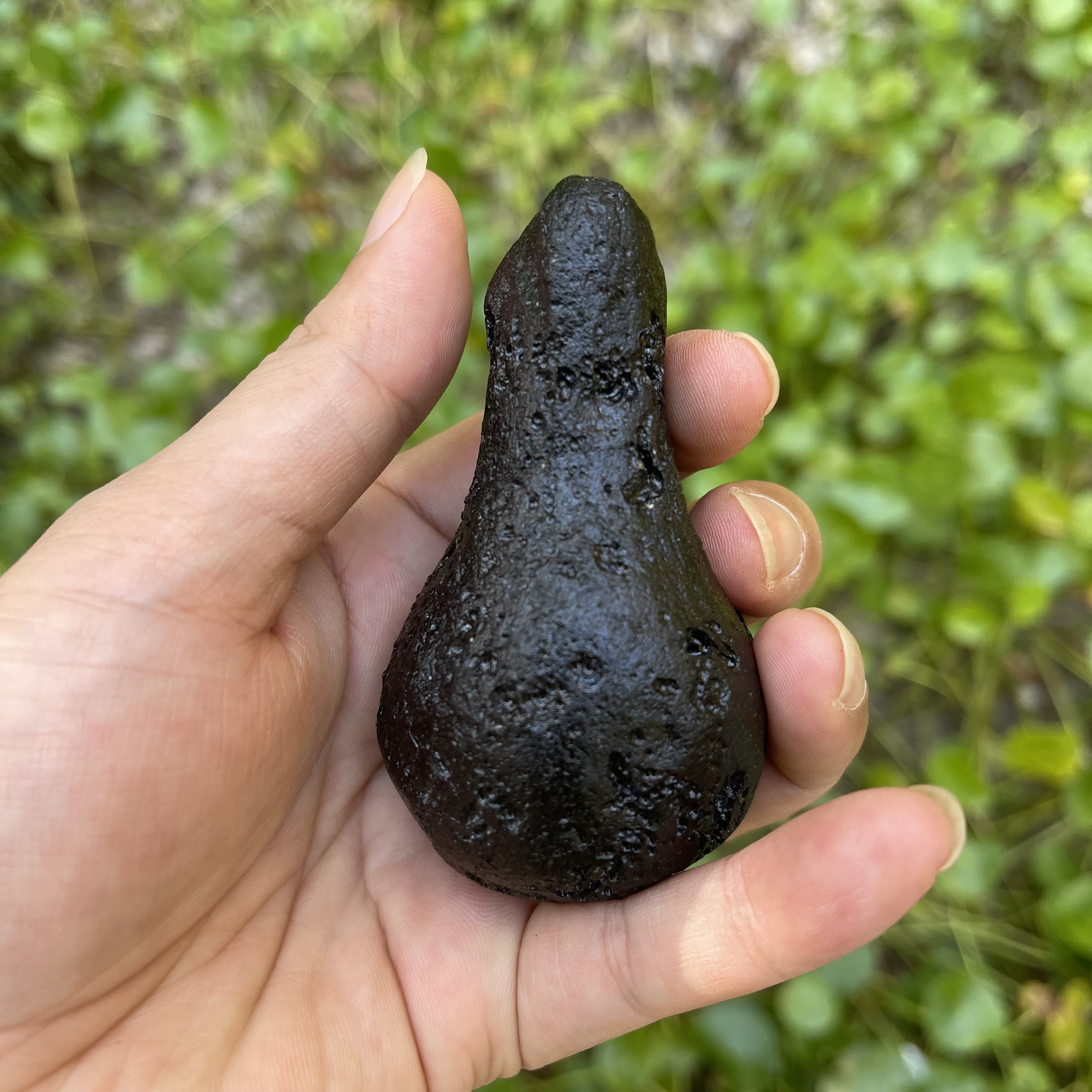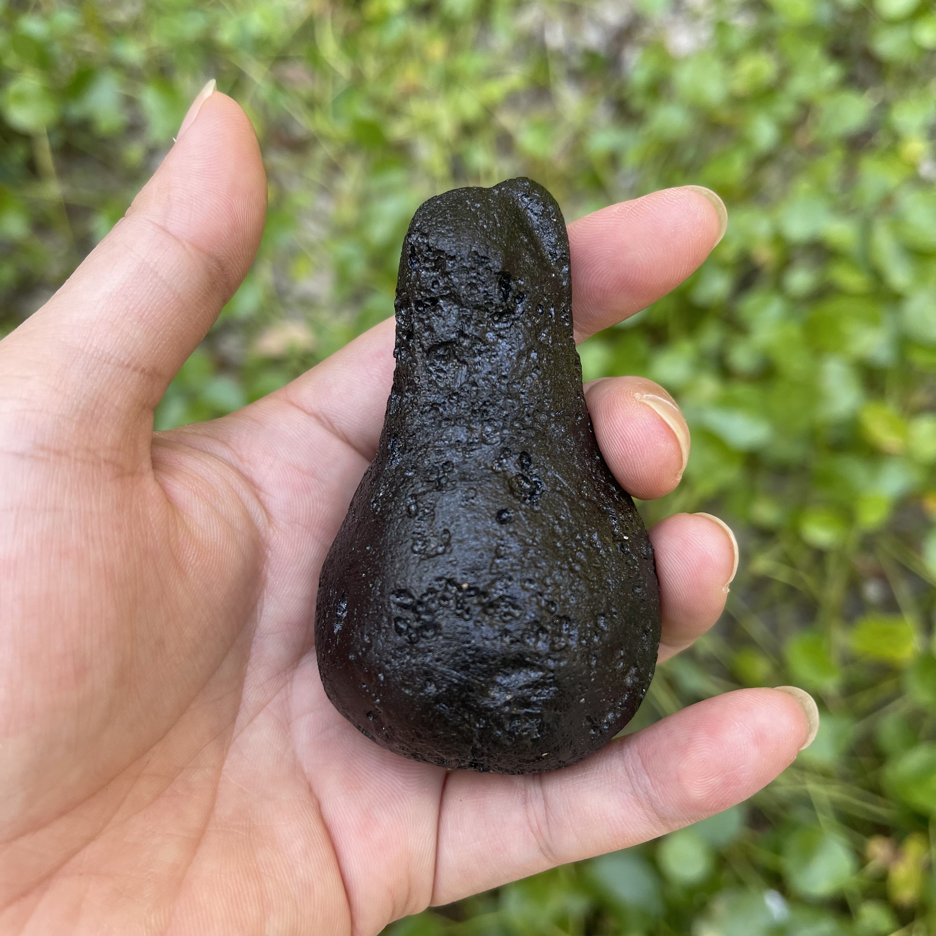 不倒翁形状玻璃陨石雷公墨,一颗奇形观赏石,难得一遇,重约154克。